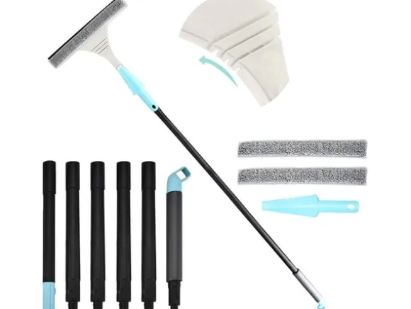 Borsten består av fyra förlängningssegment som ger en längd mellan 68 och 156 cm. Mikrofiberduken är avtagbar och tvättbar för återanvändning, och det ergonomiska handtaget ger en bekväm känsla vid rengöring. Den robusta konstruktionen med nylonborstar och slitstark skrapa bidrar till lång hållbarhet, och med snabb montering kan borsten enkelt tas isär för kompakt förvaring.