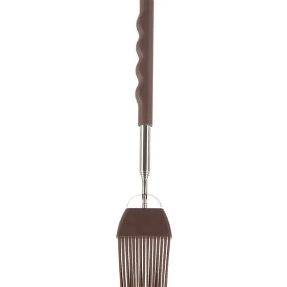 Gör det lättare att breda ut marinad på maten när du bakar eller grillar. Tack vare möjligheten att sträcka sig till en längd på 67 cm, eliminerar den risken att bränna händerna. Produktegenskaper: TELESKOP – En köksborste med teleskopskaft är perfekt för att smörja kött, kakor och köksredskap. Det skyddar dina händer från värmen när du grillar och förhindrar brännskador från den varma ugnen när du bakar. Borsten mäter 21 cm x 4 cm innan den fälls ut, och utfälld når den en maximal längd på 67 cm. SOLID – Borsthandtaget är tillverkat av metall av högsta kvalitet i silverfärg. Borsten är tillverkad av slitstark, brun silikon, som är resistent mot höga temperaturer från -40°C till +220°C. ANVÄNDBAR – Den kan användas för att smörja kallt och varmt kött, applicera marinader, pensla kakor med ägg och till och med för glasyr av bakverk. Även användbar för smörjning av köksredskap, t.ex. PRAKTISKT – När den är ihopfälld tar borsten liten plats i lådan, vilket gör den väldigt praktisk. Det teleskopiska handtaget gör att du kan anpassa borstlängden efter dina individuella behov och gör att du kan arbeta på olika höjder, t.ex. när du smörjer eller häller upp mat på en het panna eller grill. LÄTT ATT ANVÄNDA – Köksborsten kan lätt rengöras med rinnande vatten och diskmedel. För korrekt skötsel, diska inte i diskmaskin. Den teleskopiska köksborsten ger bekvämlighet och flexibilitet vid spridning, hällning och applicering av olika ingredienser på mat. Perfekt för grillning, matlagning och bakning. Den flexibla spetsen på borsten gör det enkelt att breda ut till exempel äggula eller olja på degens yta. Tillverkad av material av högsta kvalitet, vilket säkerställer användarkomfort. Originalprodukt från det tjeckiska märket Orion. Tillverkad enligt europeiska standarder.
