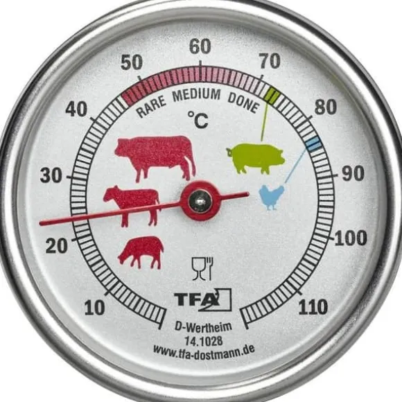 Den perfekta matlagningassistenten för alla köttälskare, grillentusiaster och gastronomer. Oavsett om du är en het gris, en sparsam typ eller en öm gris, så visar denna termometer den idealiska tillagningstemperaturen vid indirekt tillagning med stängt lock och låter dig tillaga dina köttstycken till den exakta punkten av varm luftström.