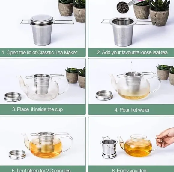 Välkommen till vår butik! Denna mångsidiga tesil i rostfritt stål är perfekt för att filtrera teblad, medicinpåsar, kryddor och soppor. Den förhindrar effektivt matläckage under tillagning och är enkel att använda. De fina, jämnt stora hålen gör att vatten kan rinna igenom enkelt samtidigt som den håller fasta partiklar inne. Det långa, vikbara handtaget ger ett säkert grepp och skyddar dina fingrar från värme. Tillverkad av hållbart, giftfritt rostfritt stål, är den byggd för att hålla och lätt att rengöra. Produktmått: 7,4 x 6,5 x 6,5 cm (2,91 x 2,55 x 2,55 tum). Din beställning inkluderar 1 tesil och 1 lock. Nöjdhet: Våra kunder är vår högsta prioritet. Om du upptäcker några produktproblem efter att du mottagit varorna, såsom skador eller felaktig mängd varor, vänligen kontakta säljaren omedelbart. Vi gör vårt bästa för att ge dig tillfredsställande kundservice.
