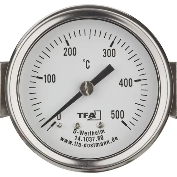- För kontroll av tillagningstemperaturen upp till 500 °C från pizzaugn, träugn, stenugn, brödugn, grill eller smolk Med klämelement (U-Clip) för fastsättning och flexibel metallsond Av rostfritt stål Temperaturskala med glaskåpa Som reservdel för en befintlig ugn, grill eller smolk, för eftermontering eller hembyggnad Inbyggnads-Ø 60mm med U-klämma 76 mm Givare Ø 8 mm x 100 mm Metallsond ca 150 cm
