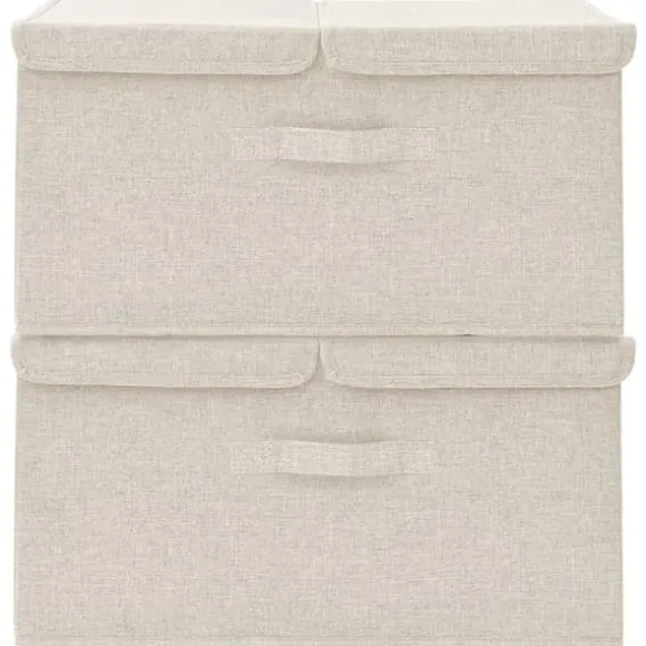 Förvaringslåda 2 st tyg 50x30x25 cm gräddvit Dessa hopfällbara förvaringslådor är perfekta för att hålla ordning i ditt hem. Förvaringslåda 2 st tyg 50x30x25 cm gräddvit (1x) Din beställning kommer att levereras i ett paket. Så snart din beställning har packats får du omedelbart din leveransinformation från oss. Vi hoppas att du blir nöjd med ditt köp.