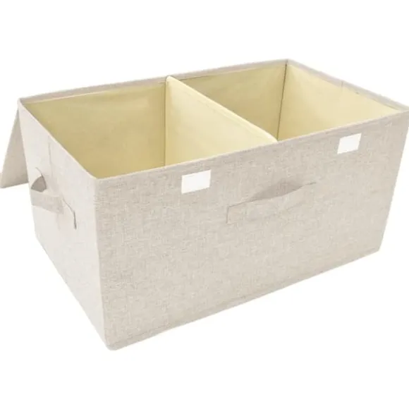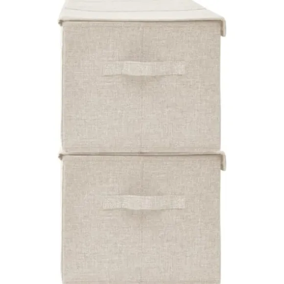 De är gjord av olika tyger, som är ganska hållbara. Förvaringslådorna har 2 fack och har gott om utrymme för att förvara leksaker, halsdukar, strumpor, böcker, osv. När de inte används kan förvaringslådorna vikas ihop för att spara utrymme. Dessutom har de ett handtag så du enkelt kan hantera dem.