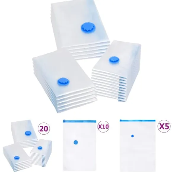Påsen, tillverkad i plast, är vattentät och mögelfri. Den är enkel att använda, bara öppna påsen, förvara föremål, stäng påsen och dammsug. Skjutreglaget gör att du snabbt och enkelt kan stänga och öppna påsen. Denna komprimerade påse är också lätt att rengöra och kan återanvändas. Leveransen innehåller 3 storlekar för att passa olika behov. Vänligen observera: Pump ingår ej.