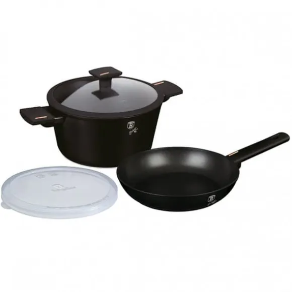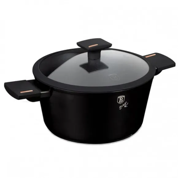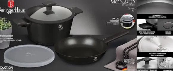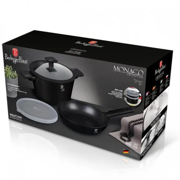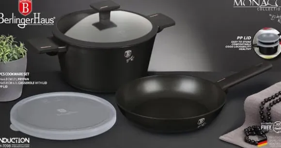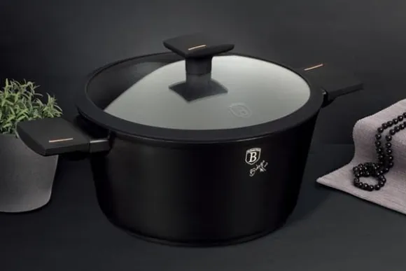Grytor, kastruller och tillbehör från MONACO TITAN COLLECTION-serien från BERLINGER HAUS är gjorda av högkvalitativt aluminium täckt inuti med en titanbeläggning med en mycket hög hårdhetskoefficient. Ytterbeläggning i matt svart. Dessa snygga och fashionabla fat är som standard utrustade med SOFT TOUCH-handtag (silikonhandtag) och glaslock med silikonkant för bättre täthet. Lämplig för alla typer av spisar: gas, el, keramik, halogen, induktion. TURBO INDUCTION-systemet (värms upp mycket snabbt) gör att du kan spara upp till 35 % energi. – Stekpanna Ø24 x 6,5 cm, 2,3 L – Gryta med lock Ø24 x 11,8 cm, 4,1 L – Plastlock för enkel förvaring i kylen – 1 st Specifikation: non-stick titanbeläggning i svart material: högkvalitativt gjutet aluminium mjukt handtag glaslock med silikonkant för alla typer av mattenera, elektriska spisar, svarta spisar, svarta. um kokkärl gör att du kan laga mat utan att fastna och med en liten mängd fett. Titanskiktet gör kastrullerna extremt reptåliga. Du kan förbereda läckra och hälsosamma rätter i dem som inte förlorar sin saftighet och näringsvärde. Lämplig för alla typer av spisar: gas, el, keramik, halogen och induktion. Skonsam rengöring rekommenderas för att bibehålla produktens perfekta skick, därför bör daglig rengöring i diskmaskin undvikas.