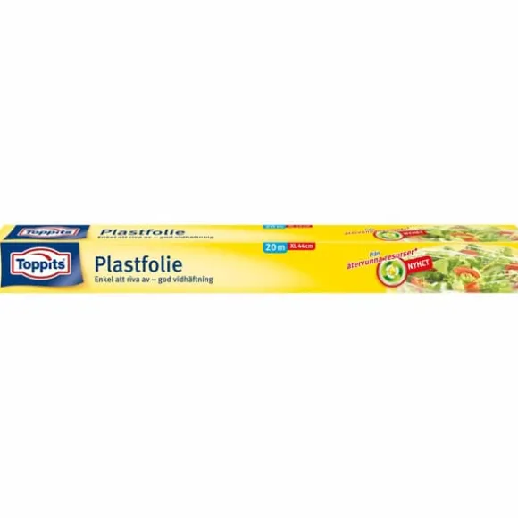 Plastfolie extra bredDen extra breda folien för stor hjälpStor fräschhet för mat på stora fat, tallrikar och skålar. Med Toppits® extra breda plastfolie på 44 cm täcker du enkelt större ytor utan problem. Att täcka ett fruktfat, som du oftast får täcka i omgångar och med två bitar folie, fixar du utan krångel och med ett svep. Folien är lätt att riva av, är smidigt att hantera och har väldigt bra vidhäftningsfärmåga.Fördelar med Toppits® extra breda plastfolieSjälvhäftande folieOptimal avrivning från en ergonomisk förpackningHygienisk förpackning med klickförslutningBredare folie – ideal för övertäckning i ett svepIntegrerad rullhållare – fixera rullen i förpackningen