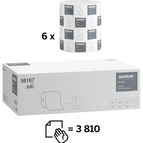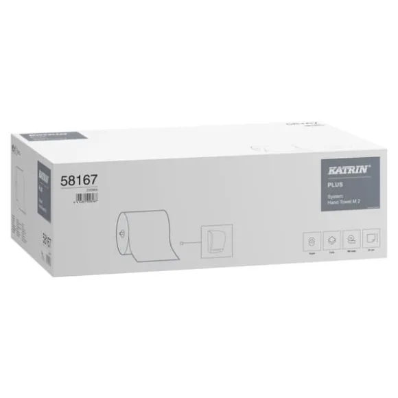 Handtork KATRIN System Plus M2, hygiensk lösning där plana ark matas ut i lagom storlek för kontrollerad förbrukning