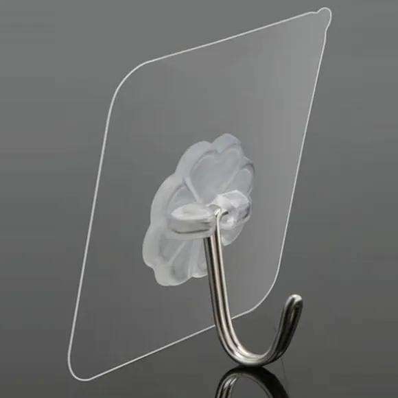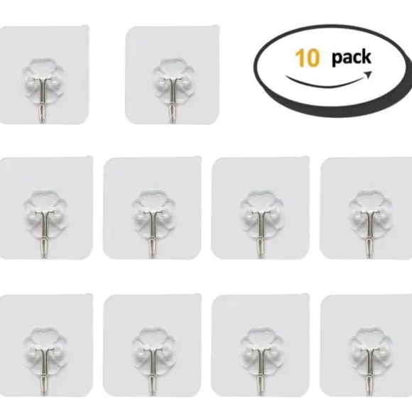Denna multifunktionella genomskinliga PVC självhäftande klädkrok ger bekvämlighet och renhet till ditt dagliga liv. Den mäter 6x6x2cm och kan bära upp till 10 kg. Den är lämplig för inomhus- och utomhusbruk. Setet innehåller 10 självhäftande krokar. Installations- och borttagningsinstruktioner medföljer.