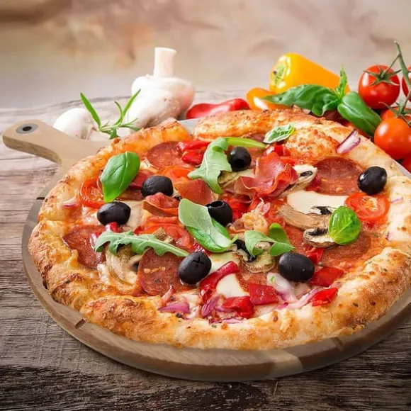 ✅ UNIVERSAL – Denna bräda är mångsidig; den kan användas för att servera och skära pizza, men den kan också användas för att servera ost eller kallskuret. Mat som placeras på den presenteras på ett originellt sätt. Den ser bra ut på bordet och matchar bra med annan porslin.
