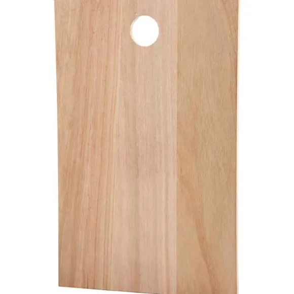 Platta av ljust trä med upphängningsögla. Kan användas som t.ex. skärbräda eller skylt, tjocklek 13 mm.