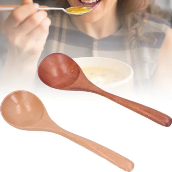 5, Säker och hållbar: Träskeden är gjord av högkvalitativt bokträ, fri från skadliga ämnen, säker och hållbar.
