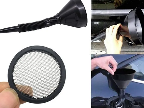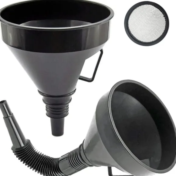 Tratten är utrustad meden fin sil, sombehåller finsmuts som sand, spån, osv