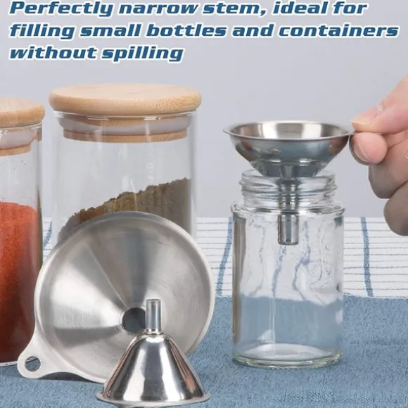 Tre olika storlekar: För att passa olika behållare kommer trattarna i tre olika storlekar. De har smala stammar för enkel överföring.