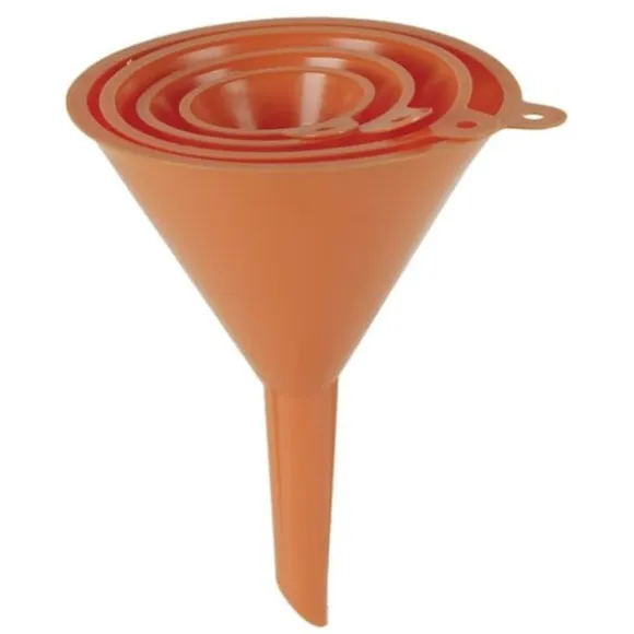 Detta sortiment av 4 PRESSOL polyetentrattar är idealiskt för livsmedelsindustrin. De är motståndskraftiga mot bränsle, olja och syra, de har en flik för bättre grepp. Mått: 135×120 mm, vikt: 0,08 kg. Perfekt för olika applikationer.