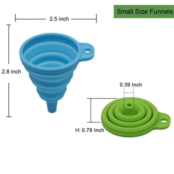 Lämplig för alla vätskor: från olja och vinäger till soppor och safter. Den minitratten (7.5 cm) passar perfekt för små flaskor och DIY-skönhetsprodukter, medan större modeller hanterar mjöl och spannmål effektivt.