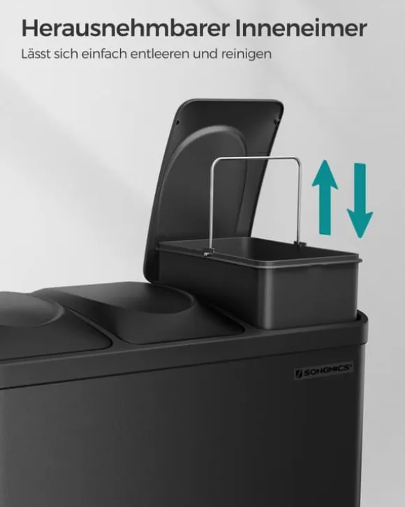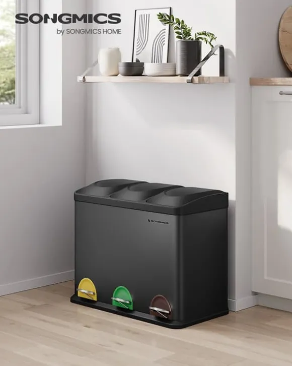 [Optimerad avfallssortering] Denna trippelbehållare har tre 15-litersfack, vilket gör det enkelt att sortera olika typer av avfall och effektiviserar ditt hems avfallshantering[Praktisk färgkodning] Varje fack i denna papperskorg har en färgkodad pedal för intuitiv identifiering och handsfree-användning, vilket gör det enkelt och hygieniskt att sortera avfall[AVTAGBARA INNERHINKAR] Med 3 avtagbara innerhinkar, var och en 7″ x 10,4″ x 16″, förenklar denna 45L pedal soptunna avfallshanteringen. Har påsen gått sönder av misstag eller spillts ut? Ta helt enkelt bort hinken för att rengöra[SOLID OCH LÄTT ATT RENGÖRA] Denna tredubbla återvinningstunna, tillverkad av robust stål och förbättrad med högkvalitativa ytbehandlingar, kombinerar enkel rengöring med långvarig kvalitet, vilket säkerställer att den förblir i orört skick[Estetisk funktionalitet] Med de eleganta måtten 60,5 x 40,5 x 48,5 cm passar denna moderna återvinningstunna perfekt i ditt kök, på bänken eller bredvid kylskåpet, vilket förbättrar dess funktionalitet och visuella charm