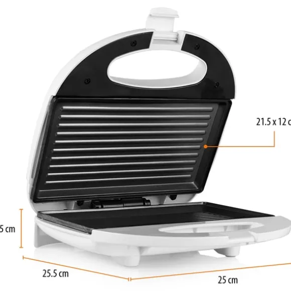 Smörgåsgrill med grillplattor för att göra läckra smörgåsar. Plattorna har non stick beläggning så att de är lätta att rengöra. Smörgåsgrillen har 2 lysdioder och lock med säkerhetslås. Storlek på stekytan 22 x 13 cm