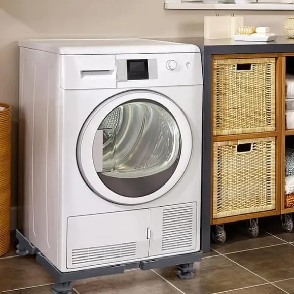 Justerbara mobilt ställ för tvättmaskiner, kylskåp Justerbar höjd Bullerdämpning, Antivibration Stabil & Korrosionsbeständig Ställ för tvättmaskin – Längd: 45-75 cm, Bredd: 45-75 cm, Höjd: 10-13 cm, Lastkapacitet: 200 KG