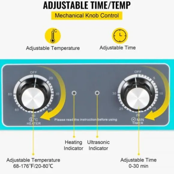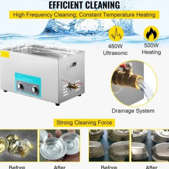 Denna professionella ultraljudstvätt erbjuder kraftfull och effektiv rengöring för smycken, klockor, glasögon, kretskort, tandproteser, smådelar och dentalinstrument. Med en hållbar tank i rostfritt stål samt justerbar värme- och timerkontroll är den idealisk för både industriellt och dagligt bruk. Den användarvänliga designen ger bekvämlighet och enkel användning.