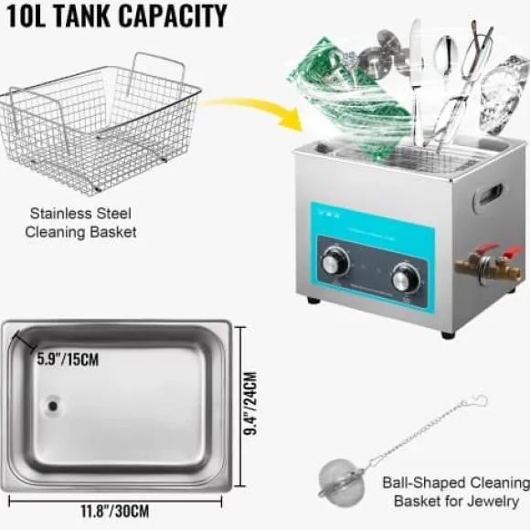 Denna ultraljudstvätt erbjuder kraftfull och effektiv rengöring för smycken, glasögon, ringar, tandproteser och musikinstrument, vilket gör den idealisk för både professionellt och personligt bruk. Med en rymlig tank och justerbara värme- och timerinställningar tar den enkelt bort olja, vax och fläckar från svåråtkomliga områden utan manuell skrubbning. Den användarvänliga designen säkerställer enkel hantering och hållbarhet för en mängd olika rengöringsbehov.