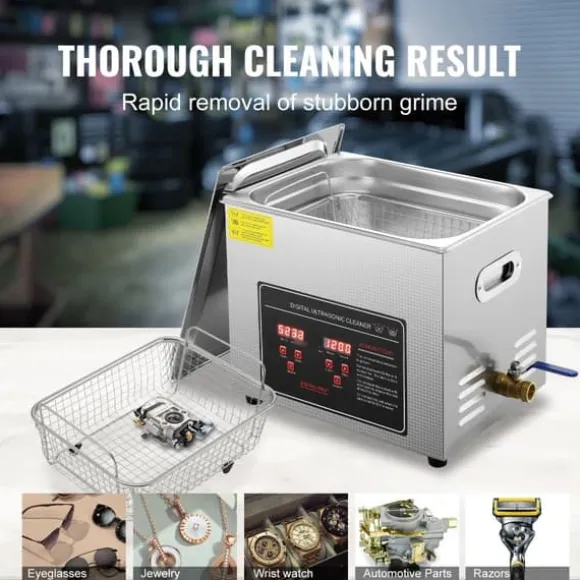 Generös 10-liters tank: Denna ultraljudsdelare har en rymlig 10-liters tank och en praktisk rengöringskorg som minimerar friktionen under rengöringscykeln. Den integrerade rengöringskorgen är perfekt för att säkert hålla dina smycken, glasögon, kretskort, rakapparater, förgasare och klockor på plats.