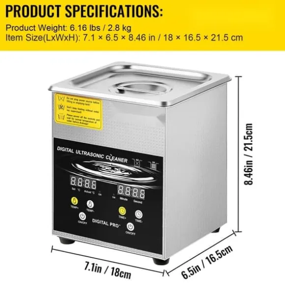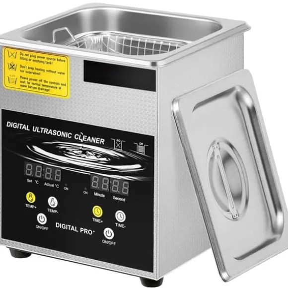 Kompakt storlek med stor 2L tank, tillräcklig för att rengöra föremål noggrant på en gång. Spara tid och ansträngningar. Dessutom med ett avtagbart lock i rostfritt stål för att förhindra vattenstänk. Ultraljudsrengörare, smyckesrengöring, ultraljudsrengöringsmedel.