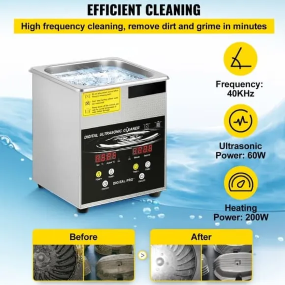 Med 200W värmeeffekt avger den 40 000 Hz ultraljudsvågor. Skapa miljontals mikroskopiska rengöringsbubblor som kraftfullt tar bort smuts och smuts på ytan. Inget behov av kemikalier eller skrubbning. Ultraljudsrengörare, smyckesrengöring, ultraljudsrengöringsmedel.