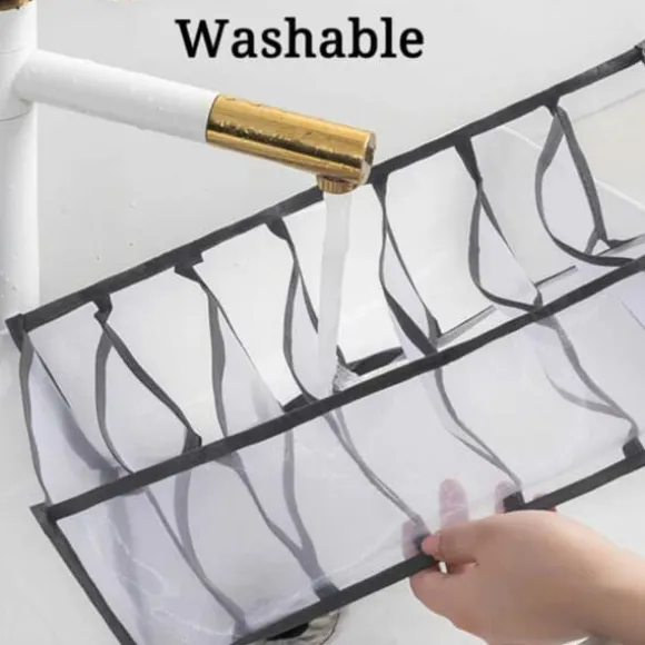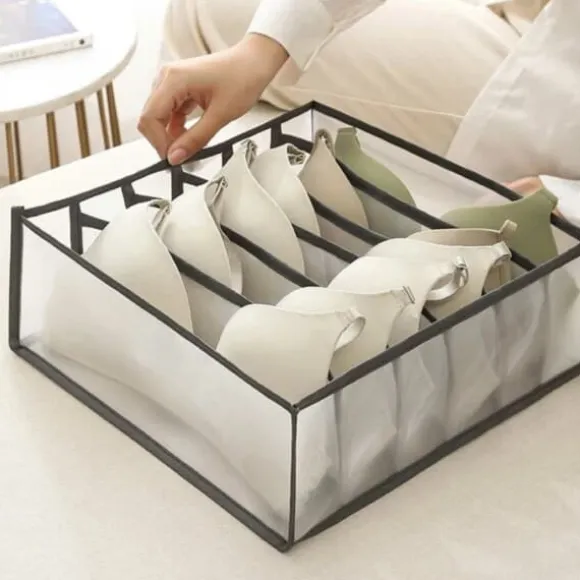 Med flera fack kan du enkelt organisera allt från trosor och strumpor till bh:ar och andra underkläder. Varje fack är tillräckligt stort för flera plagg, vilket gör att du kan maximera din förvaringskapacitet. Den kompakta designen gör att den enkelt kan placeras i en garderob eller byrå, vilket frigör värdefullt utrymme. Dessutom gör den öppna designen det enkelt att se och välja rätt plagg utan att behöva gräva igenom en hög av kläder.