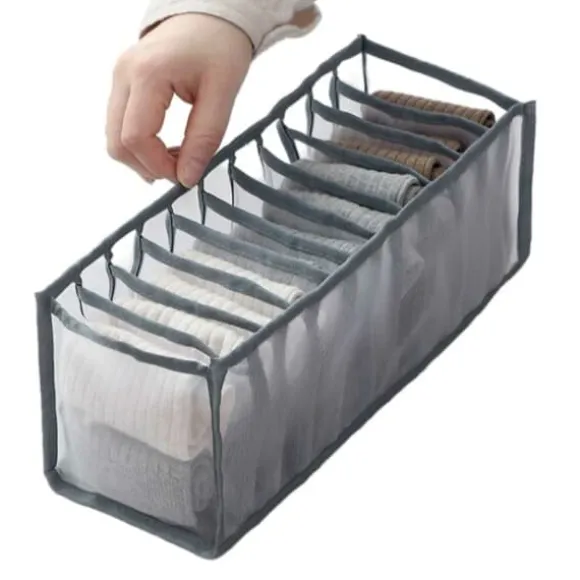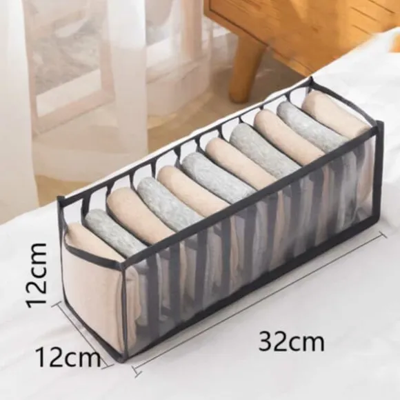 Med flera fack kan du enkelt organisera allt från trosor och strumpor till bh:ar och andra underkläder. Varje fack är tillräckligt stort för flera plagg, vilket gör att du kan maximera din förvaringskapacitet. Den kompakta designen gör att den enkelt kan placeras i en garderob eller byrå, vilket frigör värdefullt utrymme. Dessutom gör den öppna designen det enkelt att se och välja rätt plagg utan att behöva gräva igenom en hög av kläder.