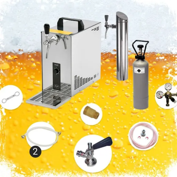 Komplett uppsättning Öltapp, öldispenser, ölmaskin, ölautomat, ölkylare, öltappingssystem – Lindr PYGMY 25 1-linje torrkylare, 35 liter/h, inklusive utmatningspelare, Green Line Framtidens öl hanteras med elegans och enkelhet med den här kompletta uppsättningen för ölhantering. Lindr PYGMY 25 1-line torrkylare är en modern och robust ölmaskin som kan ta upp till 35 liter öl per timme vid en perfekt temperatur på 10°C. Denna set innehåller en utmatningspelare, Green Line och en droppbricka i rostfritt stål. Här är huvudfunktionerna: •Färdig att använda på bara 2-4 minuter med en tappkapacitet på 35 L/h vid 10°C TD.•Kontrollområde på +2 till +10 grader för perfekt kyld öl varje gång.•Kylteknik är 45 % effektivare, vilket gör den miljövänlig och energieffektiv.•Grön linje – certifierad kylvätska R290, som uppfyller EU-förordningen 2021.•Lättvikts torrkylkran gjord av rostfritt stål med en efterkylningskompensatorkran.•Ny modell: Kraftfullare med en ny kompressor, 15 % effektivare och miljövänligare.•Torn av modell av dispenser/bensinpump, mattborstad, 1-sidig, för enkel hällning.•Rengöringsadapter 30 mm.•Ölslang 7 mm komplett, klar, 3,0 m.•CO2-flaska, 2,0 kg, med tryckreducerare 1-sidig CO2 för ölautomat 3bar och CO2-slang komplett, 1,5 m. Med sin användarvänliga konstruktion är denna ölmaskin perfekt för både hembryggare och proffs. Den är enkel att använda och kommer integrerad med allt som behövs för att börja servera öl direkt. Detta inkluderar utmatningspelare, Green Line och droppbricka i rostfritt stål för en ren och enkel hällning som håller drycken kyld och fräsch. Denna multifunktionella ölmaskin är perfekt för hemmabarer, bryggare, pubar och restauranger eller vilket annat tillfälle där öl serveras. Det är ett effektivt sätt att hålla drycken kyld, tilltalande och serveras vid rätt temperatur. Så varför inte lägga till en touch av elegans och praktiskt användande till din hemmabar eller nöjesutrymme med Lindr PYGMY 25 1-linje torrkylare? Med ett snabbt och enkelt installationsförfarande och en hög kvalitet på drycken, kommer gästerna garanterat att imponeras. Denna ölmaskin är en utmärkt investering för alla dem som vill höja kvaliteten på deras öl utan krångel. Med en liten fotavtryck och enkel hantering är det lätt att förstå varför Lindr PYGMY 25 1-line torrkylare är ett populärt val bland hembryggare och professionella kockar över hela världen. I en tid när kylda drycker är en nödvändighet för varje social händelse, kommer denna ölmaskin att visa sig vara en tillförlitlig, effektiv och miljövänlig utrustning. Så lägg till en touch av stil och enkelhet till din nästa sociala samling med Lindr PYGMY 25 1-line torrkylare.