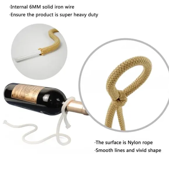 En magisk och stilren vinhållare som imponerar på alla! Tillverkad av ett robust rep som är designat för att skapa en illusion av en svävande flaska. Perfekt för att ge ditt hem eller middagsbord en unik och lekfull touch, samtidigt som det är en praktisk förvaring för din favoritflaska. Denna innovativa vinhållare kombinerar smart design med ett konstnärligt uttryck – ett måste för vinälskare och inredningsfantaster!