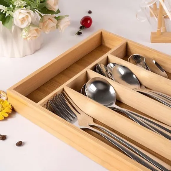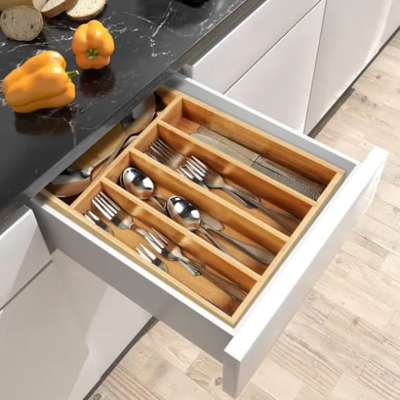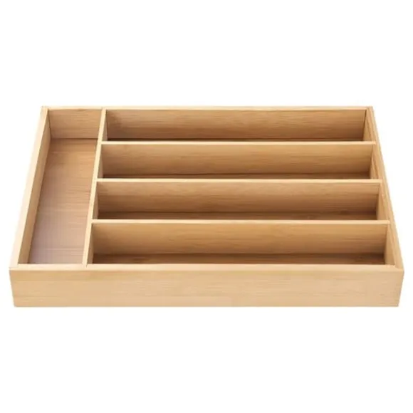Få ordning i ditt kök med Cheffingers bestickbricka. Tillverkad i naturligt bambu, har den 5 praktiska fack för att organisera dina bestick och redskap. Dess noggrant utförda finish passar perfekt i standardlådor och ger en touch av naturlig elegans till ditt hem samtidigt som den är robust och miljövänlig.