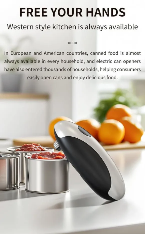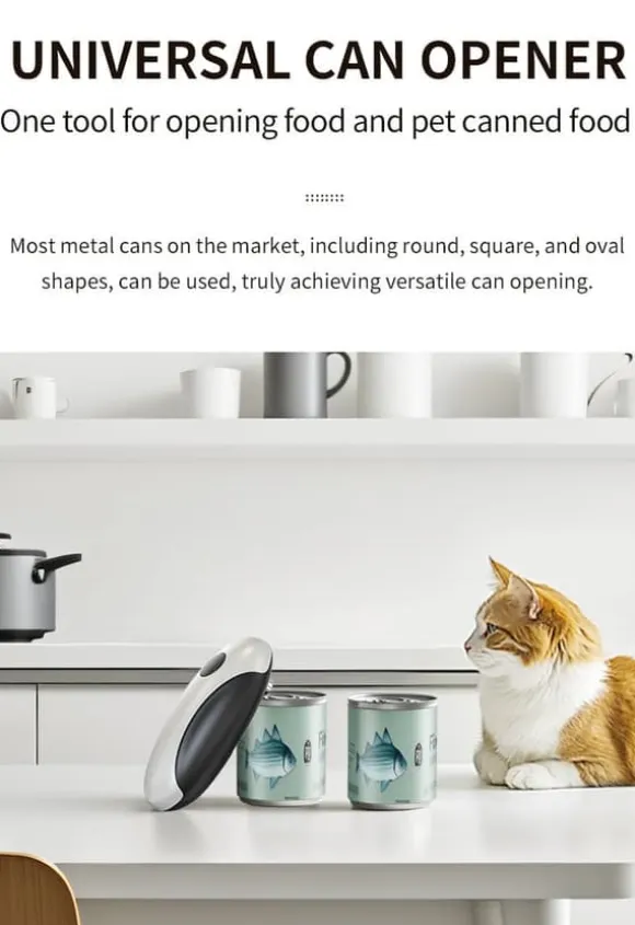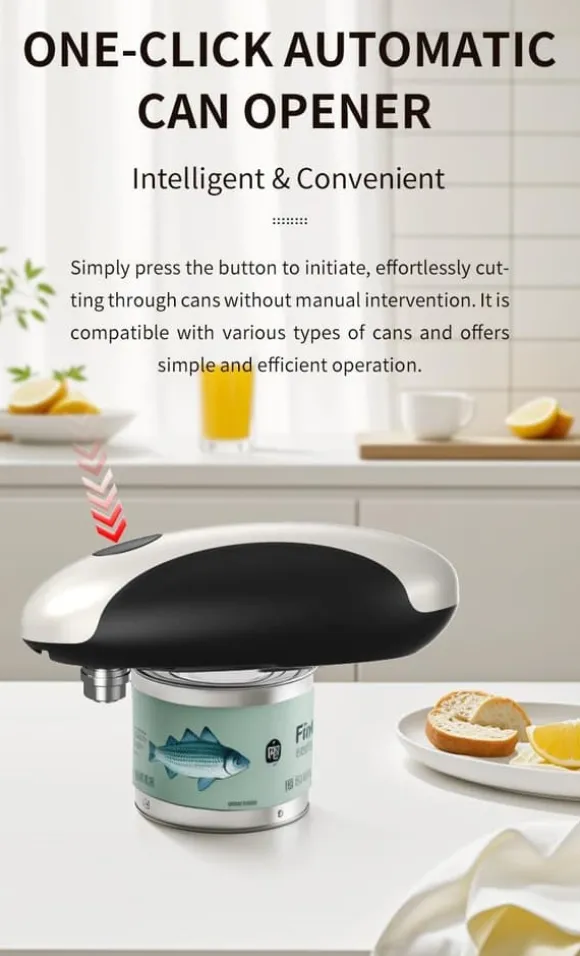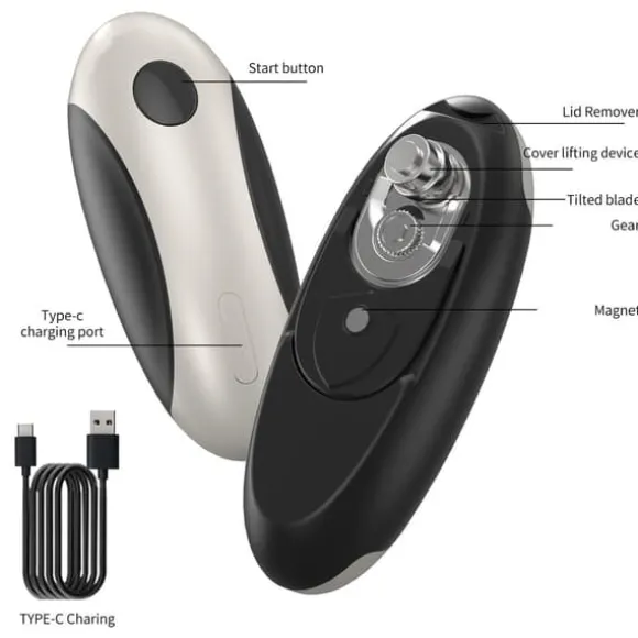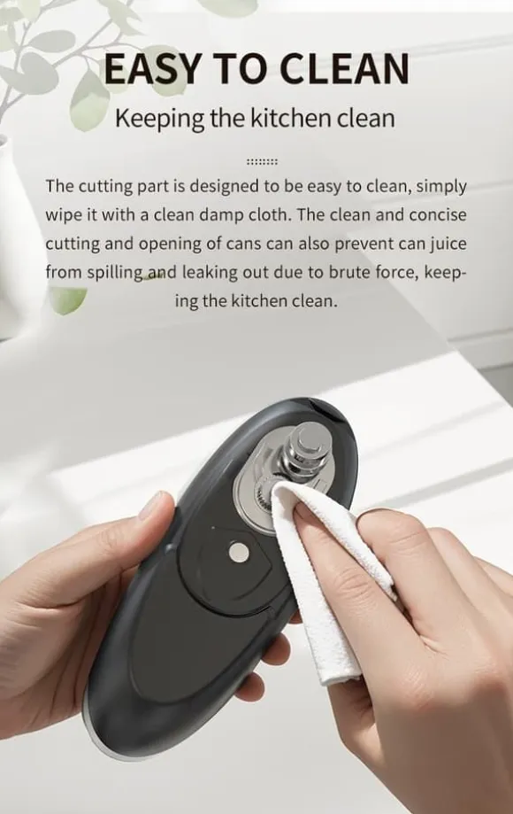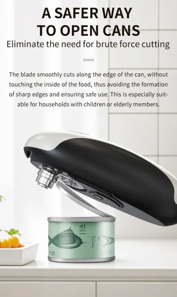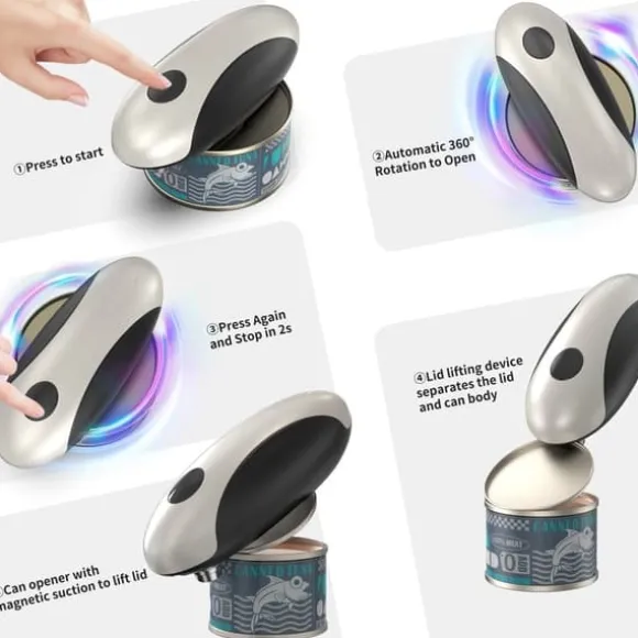 2.One-Touch Hands-Free Use: Trött på att kämpa med manuell kan öppnare som tar styrka? Denna elektriska burkeöppnare öppnas och slutar med bara en beröring – inget hårt arbete krävs. Perfekt för alla som vill lätt kan öppna