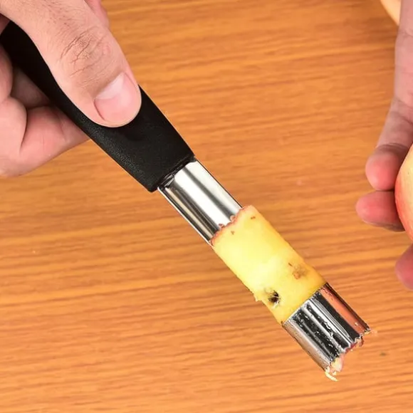 Den robusta designen, tillverkad av rostfritt stål, är motståndskraftig mot rost och håller för daglig användning. Med sin enkla hantering kan fruktkärnor avlägsnas precist och effektivt utan krångel. Perfekt för att skapa fruktsallader, bento-lådor eller dekorativa uppläggningar. Dessutom är den lätt att rengöra i diskmaskin, vilket gör den till ett oumbärligt tillskott i köket. Ett fantastiskt val för alla som älskar praktiska och stilfulla köksredskap.