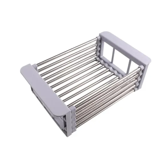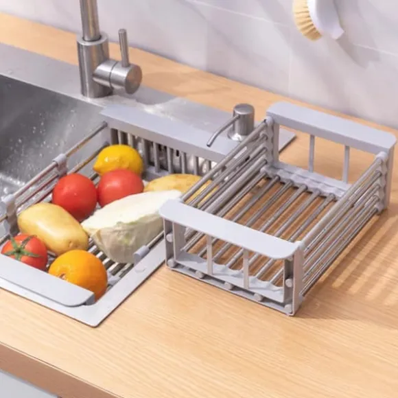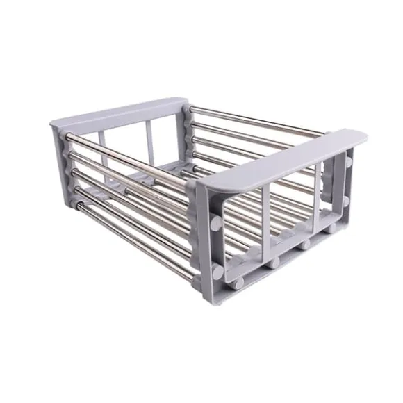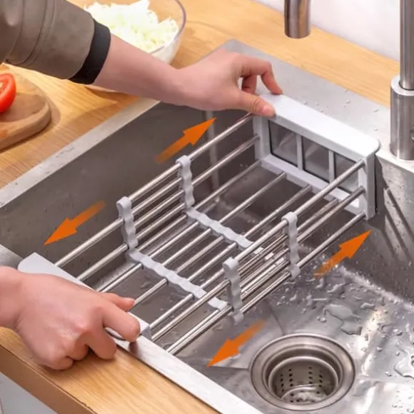 Med det utdragbara diskstället för diskhon kan du enkelt hålla dina köksbänkar torra och rena. Detta praktiska diskställ är tillverkat av hållbart rostfritt stål och BPA-fri polypropen, vilket garanterar långvarig användning och säkerhet. Den unika designen tillåter flexibelt dräneringsutrymme som kan anpassas för att passa alla former och storlekar av diskhoar. Perfekt för att torka alla typer av köksartiklar, inklusive koppar, glas och tallrikar.