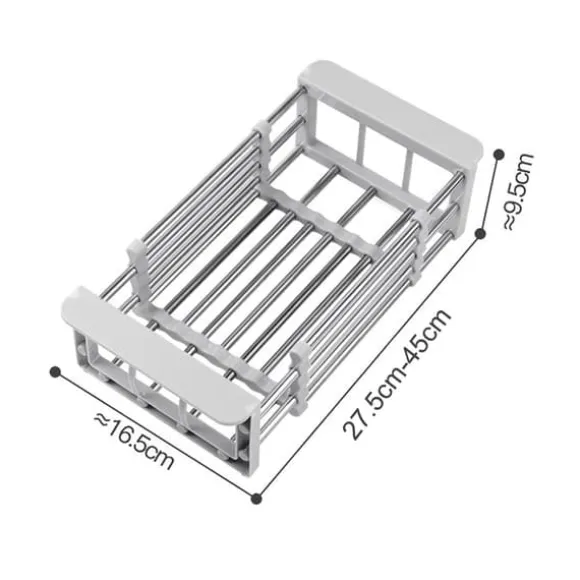 Det justerbara diskstället är både praktiskt och flexibelt, vilket gör det till en idealisk lösning för alla kök. Med måtten 16,5 x 27,5 x 9,5 cm kan det sträckas ut från 27,5 cm till 45 cm för att passa olika diskhoar. Detta gör att du kan anpassa diskstället efter dina specifika behov och utrymmen.