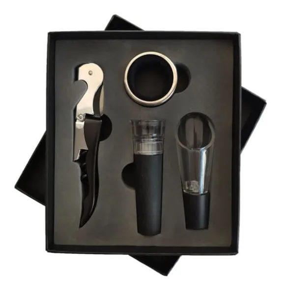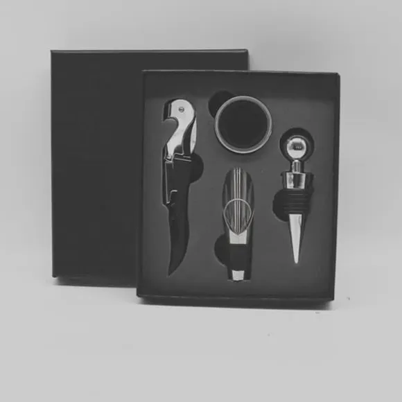 Välkommen till vår butik! Korkskruvsetet för vinflasköppnare är tillverkat av rostfritt stål, vilket säkerställer att det är rostfritt, slitstarkt och hållbart. Den är perfekt för att enkelt öppna vinflaskor. Setet kommer i en vacker presentförpackning, vilket gör det till ett utmärkt val för att ge presenter. Den är lämplig för olika tillfällen som hem, bar och restaurang. Vinöppnarsetet är litet och lätt, vilket gör det lätt att använda utan extra börda. Det är en perfekt present till vinälskande vänner och familj.