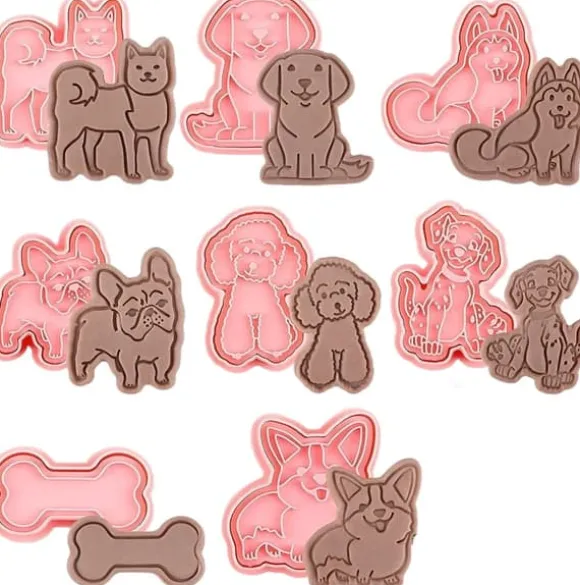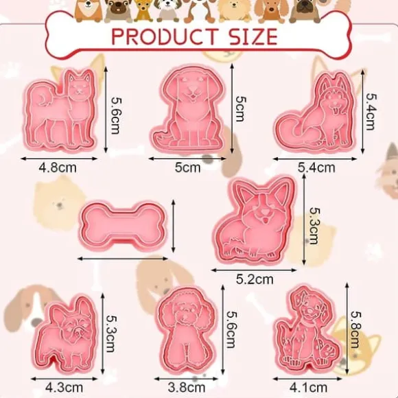 Formarna med stämplar är praktiska att använda och lätta att rengöra. Förpackade i blisterförpackning Beställ ett set med 8 kakformar med stämplar och lägg till lite kreativitet i ditt bakande. Uttryck din kärlek till hundar genom vackra kakor som inte bara är goda utan också överraskande söta.