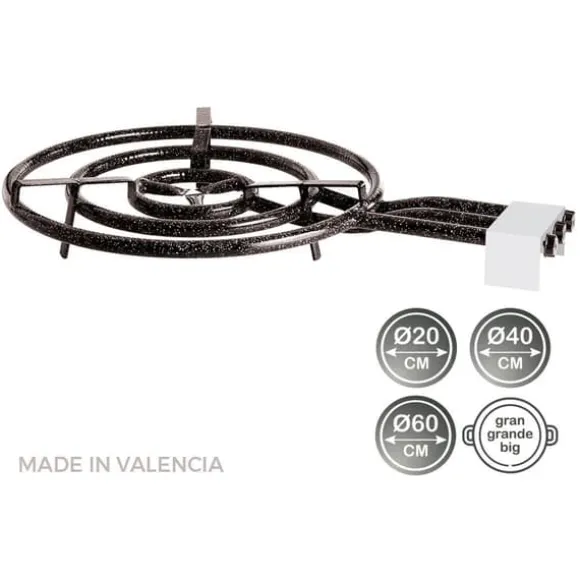 Butan/Propan Gasbrännare Ø60cm 3 Brännare (För Paella). Tillverkad av emaljbelagt laminerat stål.Specifikationer:- Vikt: 5,2 kg- Typ: Brännare- Omfattning: Ø60cm- Material: Emaljbelagt valsat stål- Kompatibilitet: Butan/propangas- Modell: 3 eldar