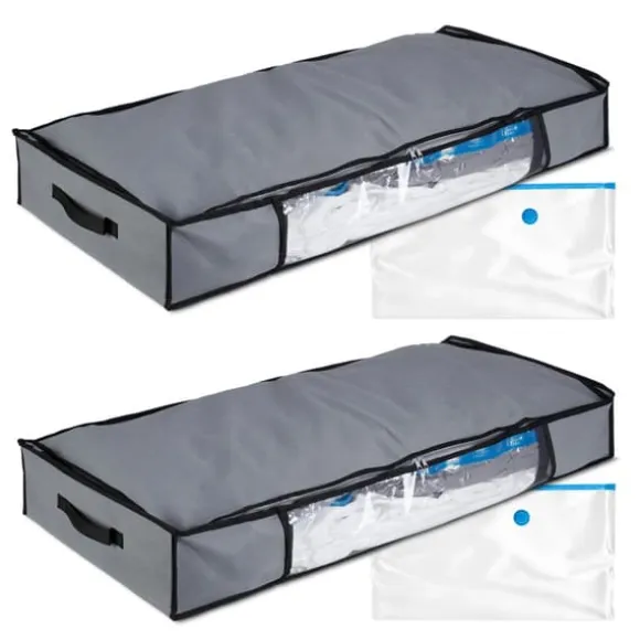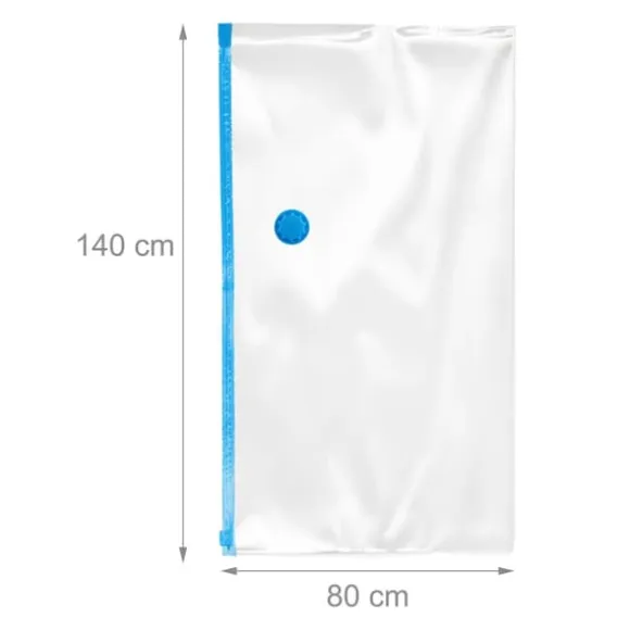 Detta set med vakuumförvaringspåsar är perfekt för att organisera och skydda kläder, filtar och sängkläder, vilket maximerar utrymmet under sängen eller i garderober. Påsarna har en vakuumventil för kompakt förvaring, ett transparent fönster för enkel identifiering av innehållet och praktiska handtag för smidig hantering. Håll dina tillhörigheter skyddade från damm, fläckar och fukt samtidigt som du behåller ett prydligt hem.