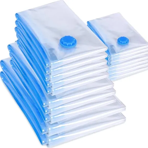CLP Space Saver Vacuum Bag Set – Utrymmesbesparande lösning för kläder, sängkläder, gardiner och andra textilier. Minska volymen på dina lagrade textilier och skydda dem effektivt mot kvalster och insekter, fukt och lukt. Den instängda och överskottsluften släpps ut genom säkerhetsventilen, vilket minskar den totala volymen med upp till 80 %. Set erbjudanden: Set om 20 – olika storlekar – 5x vakuumpåsar i storleken 70 x 120 cm – 5x vakuumpåsar i storleken 60 x 80 cm – 10x vakuumpåsar i storleken 40 x 60 cm Set om 6 – stora – 6x vakuumpåsar i storleken 30 cm x 1 x 10 cm – 1 x 20 cm. påsar i storleken 90 x 130 cm Set om 18 – stora – 18 x vakuumpåsar i storleken 90 x 130 cm VARNING: Denna plastpåse är ingen leksak! Kvävningsrisk! Förvara denna plastpåse utom räckhåll för spädbarn och barn!, CLP Space Saver Vacuum Bag Set – Utrymmesbesparande lösning för kläder, sängkläder, gardiner och andra textilier. Minska volymen på dina lagrade textilier och skydda dem effektivt mot kvalster och insekter, fukt och lukt. Överskottsluft ventileras genom säkerhetsventilen, vilket minskar den totala volymen med upp till 80 %. Set erbjudanden: Set om 20 – olika storlekar – 5 vakuumpåsar på 70 x 120 cm – 5 vakuumpåsar på 60 x 80 cm – 10 vakuumpåsar på 40 x 60 cm – 6 stora vakuumpåsar – 6 vakuumpåsar på 90 x 130 cm – 12 x stora vakuumpåsar 130 cm – 18 stora vakuumpåsar Stora