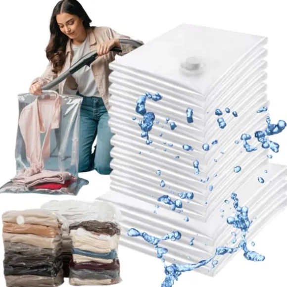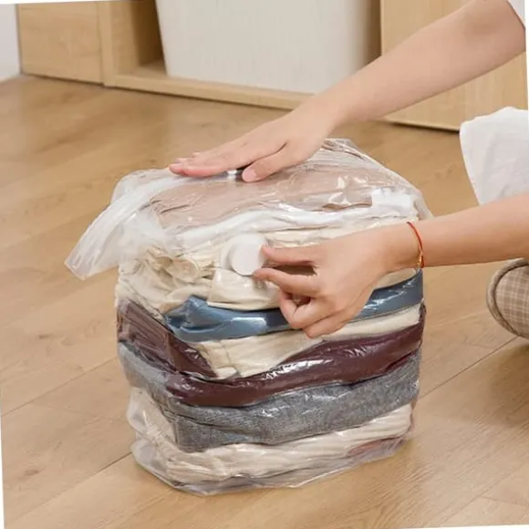 ✨ Set med praktiska vakuumpåsar Drömmer du om perfekt organisation i ditt hem, men bristen på utrymme i garderoberna gör att varje skrymsle och vrår verkar fyllda? Låt oss introducera dig till en värld av lösningar som kommer att förändra ditt liv Vakuumförvaringspåsar är ditt nya verktyg för effektiv rymdorganisation. Tack vare dem kommer du att glömma överfulla garderober och byråer, eftersom de kommer att minska volymen på dina kläder, sängkläder och täcken. Setet innehåller: ➡️ 12 vakuumpåsar, storlek 40×60 cm ➡️ 3 vakuumpåsar, storlek 50×70 cm. ❇️ Enkel kompressionsmekanism En lättanvänd mekanism låter dig packa saker hermetiskt och sedan komprimera dem med en vanlig dammsugare. Effekt? Mer ledigt utrymme och ordning i ditt hem Vakuumpåsar är inte bara en praktisk, återanvändbar lösning, utan också en garanti för säker förvaring av dina värdefulla föremål. Oroa dig inte för fukt eller damm – nu är dina föremål skyddade med vakuumpåsar – den perfekta lösningen för varje säsong och alla organisatoriska behov i ditt hem. ⬇️ Huvudfördelarna med våra vakuumpåsar ⬇️ ✅ Universell användningSet innehåller 12 påsar som mäter 40×60 cm och 3 påsar som mäter 50×70 cm, så att du kan förvara inte bara kläder, utan även sängkläder eller filtar i våra påsar ✅ Utrymmesbesparande kompressionsmekanism du att minska volymen av kläder, sängkläder och täcken med upp till 80%. Om du vill förvara vinter- eller sommarkläder under lågsäsong är vakuumpåsar den perfekta lösningen som sparar utrymme. ✅ Lättanvända påsar Våra vakuumpåsar är extremt lätta att använda. Packa bara in föremålen i en påse, ta bort överflödig luft med en dammsugare, säkra sedan påsens stängning och det är allt!✅ Säker förvaring Våra påsars hermetiska förslutning och solida material skyddar föremålen som förvaras i dem mot fukt och damm. Tack vare detta behöver du inte oroa dig för att de lagrade föremålen blir smutsiga eller att de luktar obehagligt. ✅ Återanvändbara väskor Våra väskor är gjorda av slitstarka och hållbara material som säkerställer långvarig användning. Tack vare detta kan du använda våra väskor många gånger, efter dina behov ✅ Optimal utrymmesorganisation Våra väskor är den perfekta lösningen för att organisera utrymmet i garderober, byråer, på vinden eller på resande fot. Tack vare komprimeringsfunktionen sparar du upp till 80 % utrymme! Produktegenskaper:✔️Setet innehåller 12 påsar som mäter 40×60 cm och 3 påsar som mäter 50×70 cm.✔️Låter dig minska volymen av kläder, sängkläder och täcken med upp till 80%.✔️Lätt att använda – packa bara in föremålen i väskan , ta bort överflödig luft med hjälp av en dammsugare och säkra sedan förslutningen väska.✔️Återanvändbar – hållbara och hållbara material säkerställer långtidsanvändning.✔️Säker förvaring – hermetisk stängning skyddar mot fukt och damm.✔️Perfekt lösning för att organisera utrymmet i garderober, byråer, vinden eller på resande fot.