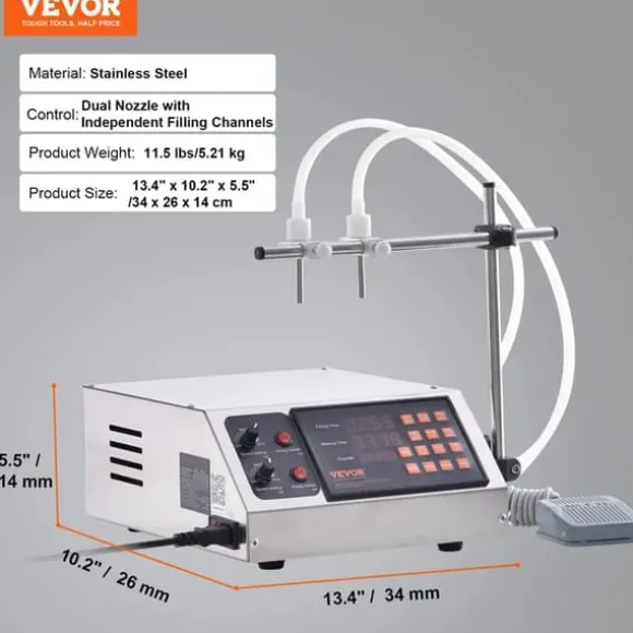 - snabb fyllning med högt flöde: driven av en robust membranpump uppnår denna fyllningsmaskin en maxflödeshastighet på 125 fl. oz/min (3,7 l/min) för lågviskösa vätskor inom ett område på 78,7 tum (2 m). från mjölk till vinäger hanterar den olika vätskor med lätthet, vilket gör den idealisk för småproduktioner.
