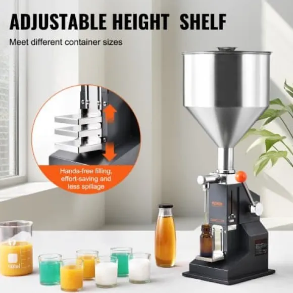 Denna manuella pastafyllningsmaskin är utformad för effektiv, exakt och spillfri fyllning av ett brett utbud av vätskor och pastor, vilket gör den idealisk för användning med mjölk, vatten, juice, eteriska oljor, schampo, kosmetika och honung. Med förstärkt handtag, justerbar fyllningsvolym och höjdjusterbar hylla garanterar den användarvänlig drift och mångsidighet för olika behållarstorlekar. Den hållbara konstruktionen i livsmedelsklassat rostfritt stål säkerställer säkerhet, lång livslängd och enkel rengöring.