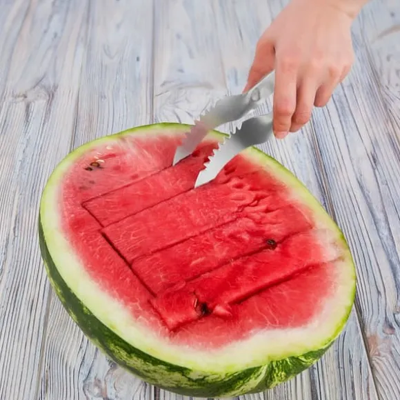 ✅ Skivar melon och vattenmelon i jämna bitar – Den kan inte bara användas för att skiva, utan även som tång för att ta bort det skivade fruktköttet.