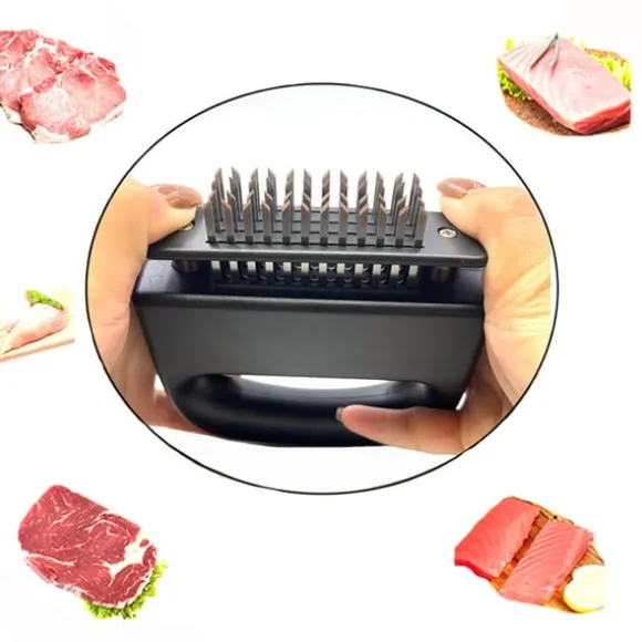 Vassa nålar: Utrustad med 48 nålar i rostfritt stål som enkelt tränger igenom köttbitar av olika slag, inklusive nötkött, fågel, fläsk och fisk. Nålarna skapar små värmekanaler som förkortar tillagningstiden utan att påverka köttets naturliga saftighet.