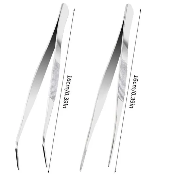 två pincetter i rostfritt stål vesaneae för praktisk daglig användning. dessa robusta och hållbara pincetter är perfekta för att greppa, vända och servera olika livsmedel. den fina spetsen säkerställer ett precist grepp om små föremål. lätta att rengöra och förvara. idealiska för grillning, ugnsbitning, fritering och mer.