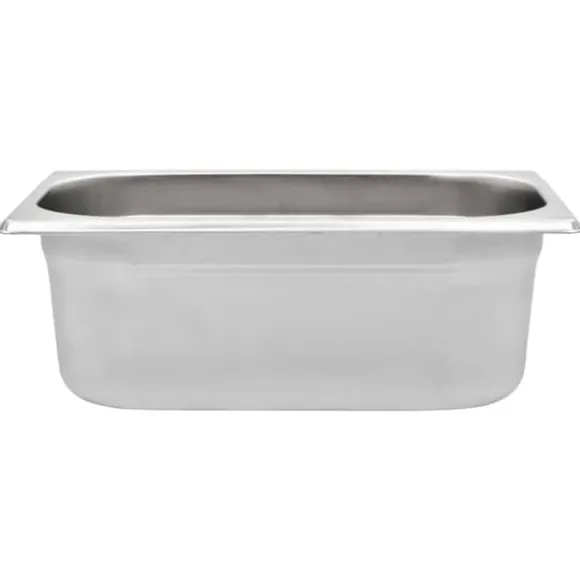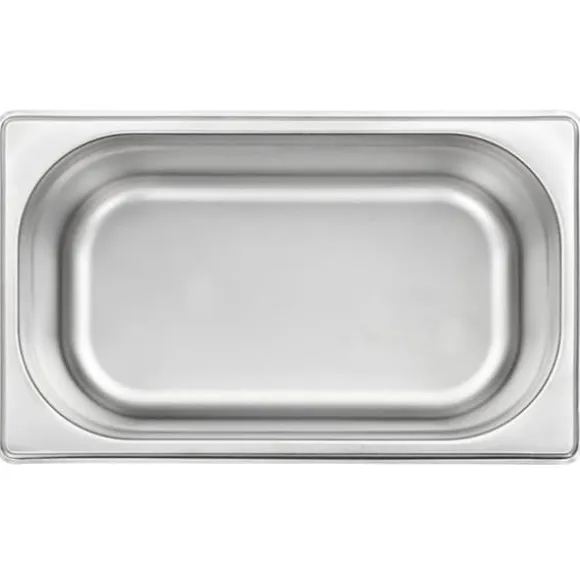 Eftersom den är tillverkad i starkt rostfritt stål har kantinen en massiv konstruktion som är enkel att rengöra. Dess slitstarka material är repfritt och enkelt att underhålla. Kantinen har standardmått och du kan därmed använda den universellt och med ett stort antal kombinationer. Följaktligen passar den perfekt i alla dina professionella köksskåp och med utrustning såsom vattenbad, chafing och salladsbarer. Plåten går att stapla och kan gömmas undan för att spara plats, därför är den väldigt praktisk och optimal för användning i restauranger, på hotell såväl som i hemmet.