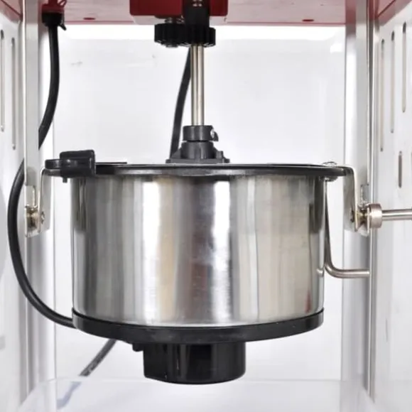 Popcornmaskinen har en elegant design och blir en hit för varje fest! Den har en stor behållare i rostfritt stål på 2,5 OZ med ett inbyggt omrörningssystem och poppar upp till 10 koppar popcorn per omgång.