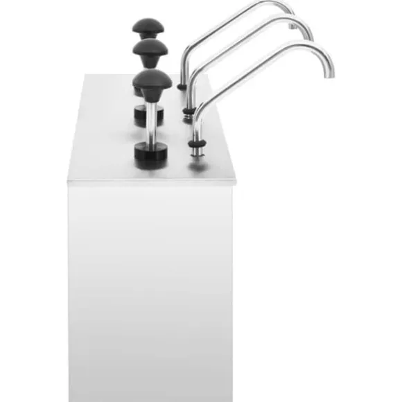 Denna såsdispenser är en avancerad lösning för servering av såser vid bufféer, grillar och andra evenemang. Lättpumpad dispenser minskar avfallet och ger en skräpfri dispenseringslösning. Denna dispenser för kryddor med pump är gjord av högkvalitativt rostfritt stål. Alla delar som kommer i kontakt med mat är av rostfritt stål 304. Denna dispenser gör det inte